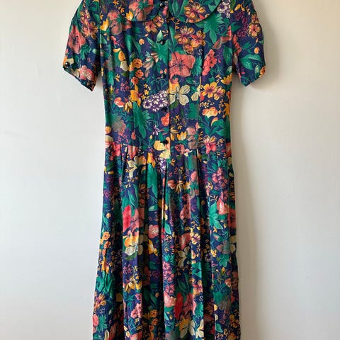 Aivan upea, värikäs ja hyvin säilynyt vintage-henkinen mekko. Kaunis graafinen retro-kuosi ✨