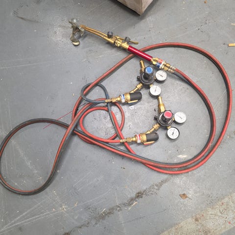 Eli myynnissä olisi vanha X21 poltinsarja letkuilla ja säätimillä.