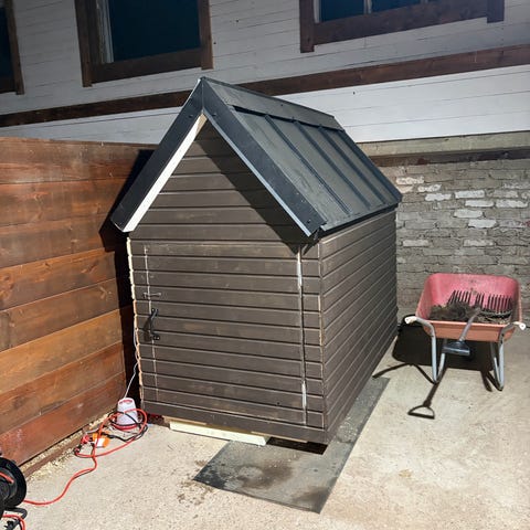 Kahdelle isolle Norjan harmaa pystykorvalle tehty. Kaksi luukkua. Seinissä ohut styroksi. Sisäpinnassa ohut vaneri. Ostaja saa kaupanpäälle kuvan verkkoaidan jos purkaa itse.