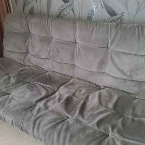 Tästä seuraavalle vielä aivan siisti vuodesohva. Divaanin alla myös säilytystila. Virheetön ei toki ole, mm kankaassa pieni reikä(näkyy kuvassa) Kätisyyden saa vaihdettua. Pesty juuri tekstiilipesurilla.