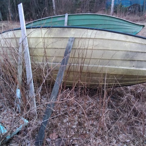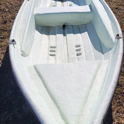 Ylimääräseksi jäänyt soutuvene kaupan, paikattu yhdestä kohtaa pohjasta