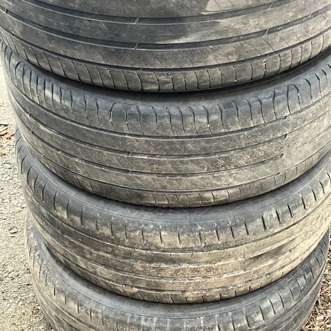 Pintaa 4-5mm, tasaisesti kuluneet. Valmistettu 06/2024, vanteille asennus onnistuu lisähinnasta tarvittaessa.
