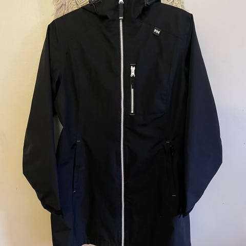 Hyväkuntoinen tummansininen takki. Ohut vanuvuori. Naisellinen leikkaus.