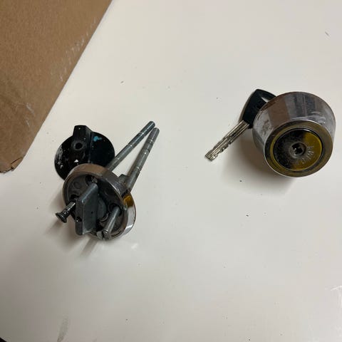 Alle vuoden vanha lukkopesä, irroitettu toimivana.