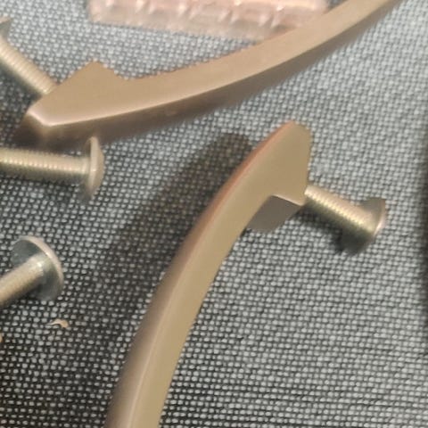 Suorakulmaiset vetimet ovat alumiininvärisiä ja metallisia, ja mukana tulee kiinnitysruuvit. Lisäksi mukana on kaareva krominvärinen vedin. Vetimet soveltuvat esimerkiksi keittiökaappeihin, vaatekaappeihin tai muihin säilytyskalusteisiin, joissa on tarve vaihtaa tai lisätä vetimiä. Pituus näkyy kuvissa mittanauhan avulla.