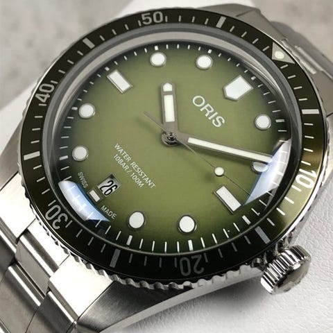 Oris - Divers Sixty-Five Automatic - 01 733 7707 4057-07 8 20 18Kotelo: ruostumaton teräs Kellokoneisto: Sveitsissä valmistettu automaattikoneisto Oris kaliber 733 Kellotaulu: vihreä Halkaisija: 40 mm ( ilman kruunua) Lasi: safiirilasi Hihna: alkuperäinen ruostumattoman teräksen hihna Ranteen koko: noin 21 cm Kunto: Uusikunto! Takuu: Oris takuu Toimitus: alkuperäisessä laatikossa + alkuperäinen mukana tuleva Oris-todistus + aitoustodistus "de Horlogemeesters"Lähetys: tämä kello lähetetään kirjeitse ja vakuutettuna (DHL Express).