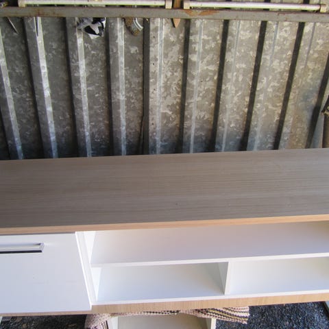 Kuvanmukainen TV-taso pyörillä. Savonlinnassa.