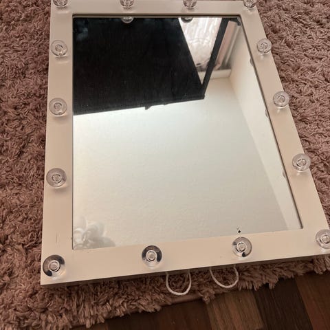 Vanhan ajan valkoinen meikkipeili (piianpeili) pienellä säilytyslaatikolla.