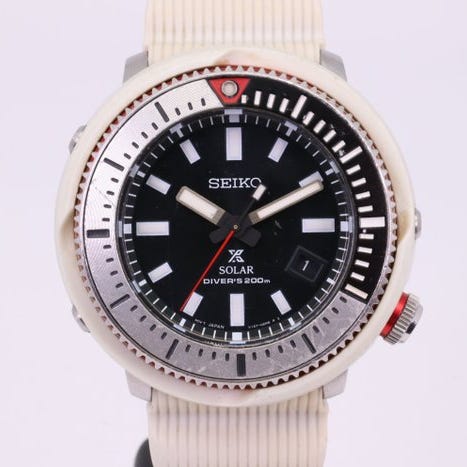 —// KUVAUS //—Malli: Seiko Prospex SUT422P1 kultaisella kehällä varustettu aurinkokäyttöinen Tuna-sukelluskelloMateriaali: ruostumaton teräsSävy: helmiäisharmaa valkoinen (dial)Aivan koko: 38,5 mm bumperin kanssa (lukuun ottamatta kruunua)Ranteen koko: sopii jopa 19,0 cm ranteeseen.Liike: Seiko V131 aurinkokennolla varustettu kvartsiliikeVarausvoima: Enintään 6 kuukauttaToiminnot: Ajan pitäminen, aurinkokennä lataus, sukeltajien pyörivä kehys, hehkuvat osoittimet ja tuntimerkit, ristikkäissuuntautunut kruunu.—// TOIMITUKSEN SISÄLLÖT //—Alkuperäinen laatikko: Kyllä [Seiko-valkoinen tonnikalakotelo kuten kuvissa]Alkuperäiset paperit: Ei [tagit vain]—// TILA //—Käyttömerkintöjä kuorella: * [kevyttä kulumaa kuorella karhennetuilla viivoilla. Ei merkittäviä lovia tai naarmuja]Käyttömerkintöjä takakuoressa: * [kevyt kuluma]Kristallin kuluma: -(*) [hyvin vähäistä kulumista] Kellonlevyin (dial): - 64 Osoittimet: - Kehys (bezel): -(*)Kruunu: -(*)Kauluksen/rannehihnan asettelu (Kuvauksessa mainittu): -(*) [Seiko-valkoinen kumi hihnat, malli B18. Suojuskalvo on yhä metallisessa kiinnikkeessä. Katso valokuvat]ASIAKKAIDEN SANOMA RATING- STANDARD:- None (Paras)* Humalannetonmerkittävä** Pienikokoinen*** Keskikokoinen**** Painava***** Vauriollinen (Worst)(*) puolikas tähti / välimuotoisuus— // KOKONAISARVIO //—ARVIO: S / A+ARVIO-OPAS:N - Uusi ilman kulumaa.S - Lähellä minttukuntoa, minimaalisia kulumia.A+ - Erittäin hyvä kunto, käytetty vähän kulumisen merkkejä.A - Hyvässä kunnossa pienillä kulumis- tai naarmummerkeillä.B+ - Kohtalaisessa kunnossa ilmeisiä kulumismerkkejä.B - Huonossa kunnossa runsailla kulumismerkeillä.V - Yli 20 vuotta vanha ja vintage-kunnossa ilmeinen kuluminen ja naarmut.ND - Pelastettavassa kunnossa, ei toimiva tai huoltoa vailla. Puuttuvia osia.—// SHIPPU- TAPA //—PALVELIJA: FedEx Economy tai vastaava—[[[ ASIAKKAILLE KOHDATTEET ]]]—[KUVAT]- Kaikki kuvat eivät ole retusoidut (paitsi sarjanumerot, jotka on piilotettu turvallisuussyistä). Kaikki kuvausten huomautetuista vioista, joita kuvissa näkyy, voidaan pitää kuvauksen mukaisina. Kuvat puhuvat tuhat sanaa, joten pyydämme tutustumaan kuviin huolellisesti ennen tarjouksen antamista, sillä ne muodostavat olennaisen osan kuvausta. Arvostamme asiakkaiden suhdettani, joten en halua olla pettymys kun tavara saapuu.[TARKKUUS]- Tarkkuus testataan jokaisessa kellossa vaakatasossa (levyn edessä) täysin jännitysä varastossa ja pitää ajan kohtuullisesti ennen lähetystä. Tarkkuuteen voivat vaikuttaa esimerkiksi rannetyöaika, käsivarren liike ja jousen jännitys. Yli 10 vuotta vanhat kellot saattavat kokea suuremman tarkkuuseron johtuen mekaanisesta kulumisesta.[AUTENTIKAATTIA]- Kaikki myymäni kellot ovat aitoja. Yritän merkitä kaikki mahdolliset jälkitoimittajan osat, jotka voin tunnistaa, mahdollisimman hyvin. Arvioi tuotteet kuviin perustuen, sillä ne on otettu saamastasi tuotteesta. Kirjallinen kuvaus on vain apuväline, kun kuvat eivät näytä vikaa täydellisesti (poikkeuksena uusille tuotteille, joista kuvat voivat olla aiemmista listauksista borrowed).[KELLONHOITO-OHJE]- Kelloa ei suositella käytettäväksi suihkussa tai kylpyvedessä. Kuuma vesi ja saippua voivat heikentää kellon kumitiivisteitä ja aiheuttaa vuotoa. Sumu (vesihöyry) on also vähemmän tiheää kuin vesipisarat ja pääsee kelloon helpommin. Älä pidä kelloa suihkussa/kylvyssä tai kosteassa ympä