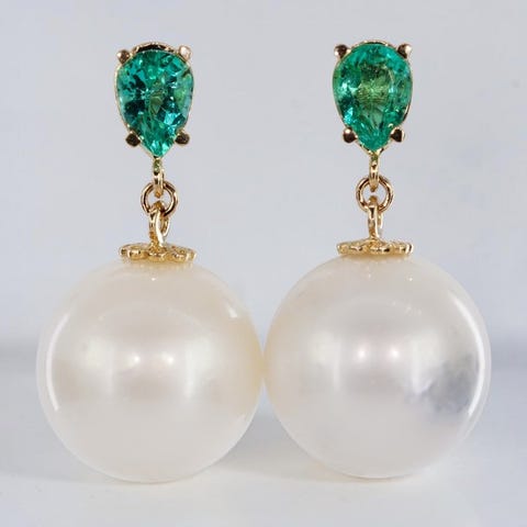 14 kt (585) kultaiset korvakorut luonnollisilla smaragdeilla ja Etelänmeren helmilläKuvaus:Tyylikkäät käsintehdyt 14 karaatin (585) kultaiset korvakorut, joissa on luonnolliset pyöreäleikkausmaiset smaragdit ja aitoja Etelänmeren helmiä. Smaragdit näyttävät elävän kirkkaan vihreän värin, luonnollisine inkluusioineen, mikä lisää jalokivien luonteenomaisuutta ja aitoutta.Ripustettuna alapuolelle ovat helmet, jotka ovat luonnollisia Etelänmeren merisukellus-helmiä, joilla on pehmeä valkoinen kehysväri ja hieno kermaisen vivahteen sekä sileä satiininen kiilto. Valoisan helmien ja kirkkaan vihreiden smaragdien harmoninen kontrasti luo hienostuneen ja ajattoman kokonaisuuden, joka sopii sekä arkipäivän eleganssiin että erikoistilaisuuksiin.Tässä kappaleessa:– 2 luonnollista smaragdia, pyöreäleikkaus– Koko: n. 3,6 mm kukin– Smaragdien kokonaispaino: n. 0,80 ct– Väri: elävä vihreä luonnollisilla inkluusioilla– 2 luonnollista Etelänmeren helmeä (merivesi)– Helmen halkaisija: n. 10,7 mm– Väri: valkoinen, pehmeä kermaisen vivahteen ja satiinisen kiillon kanssa– 14 kt (585) keltakulta (leimat on postissa)– Korvakorujen kokonaispaino: n. 4,46 g– Käsintehty muotoiluKivet on testattu sertifioidun gemologin toimesta.Kullan todistus:Kullan puhtaus on ammattimaisesti testattu ja vahvistettu 14 karaatin kullaksi.Ehto:Uusi, käsintehty kappale.Pakkaus:Toimitetaan ylellisessä korulaatikossa, brändätyllä lahjapakkauksella sekä allekirjoitus- ja leimakastutetulla aitoustodistuksella sekä laskulla.