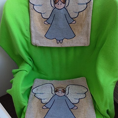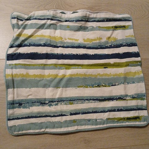 Uusi 50x60cm tyynyliina, jossa nukkumatti kuva ja iltarukous.