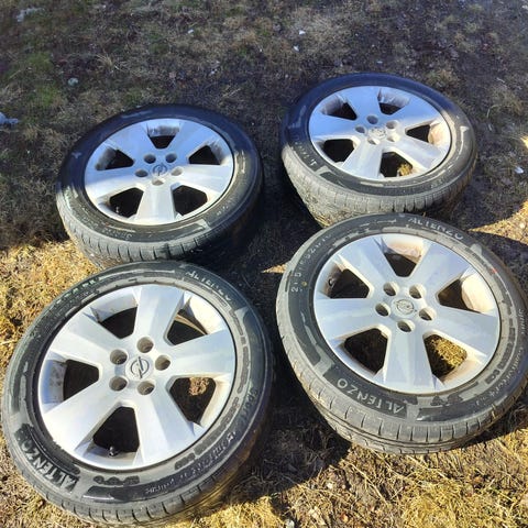 Myydään siistikuntoiset Opelin Irmscher vanteet ajettavilla Kumho kesärenkailla. Renkaissa pintaa aika tasaseen 4mm.