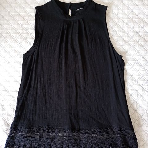 Musta kauluspaita, jossa olkapäiden kohdalla ihanat koristeelliset yksityiskohdat. Edessä rintataskut ja napit. Hihansuissa napit minkä lisäksi korkeudella kummassakin hihassa napit sitä varten, että hihat saa halutessaan käärittyä ja kiinni napilla. Ihanan ilmava ja kevyt materiaali: 100% viskoosia. Kainalo-kainalo 47 cm, olka-helma 69 cm. Savuton ja eläimetön koti.