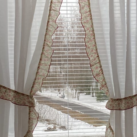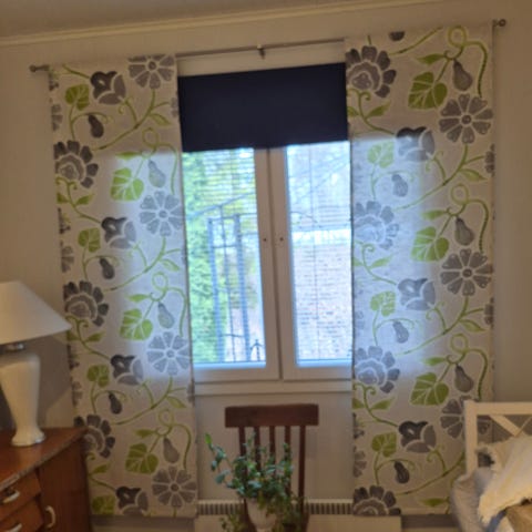 Myydään käyttämättömät kukalliset verhot. Merkki ei tiedossa. Monivärinen / kerma.