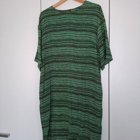 Koko 46. Pituus olalta helmaan n. 113cm, leveys kainalosta kainaloon n. 66cm.