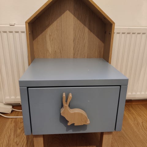 Haikeudella myyn puisen lastenhuoneen kirjahyllyn. Meillä toimi täydellisenä yöpöytänä - iltasadut ja pehmo hyllyissä, päällä pieni valaisin.