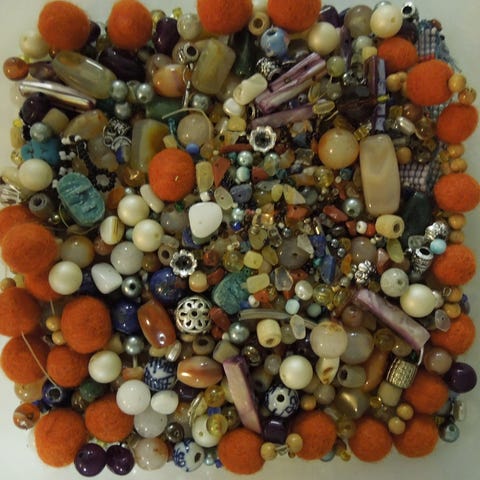 Sekalainen erä värikkäitä helmiä ja nauhoja