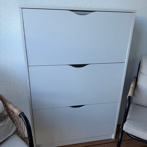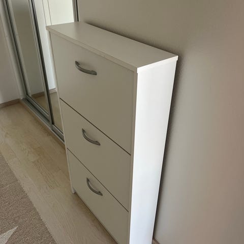 Käytetty mutta edelleen siisti ikean hemnesin kenkäkaappi neljällä lokerolla. Yksi isompi jälki kaapin edessä laidassa (katso lähikuva). Kiinnitysosia ei mukana. Ainoastaan nouto Malmilta. Käteinen tai Mobilepay.