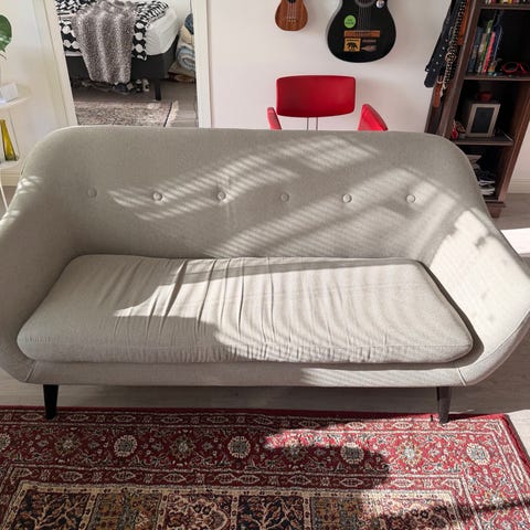 Harmaa 2-3 istuttava sohva. Kangas perus siistissä kunnossa. Myydään muuton tieltä pois. Leveys noin 180cm.