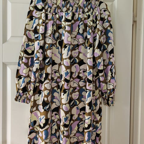 Ohut kirjava mekko,tummansininen alusmekko mukana.pitkät hihat.