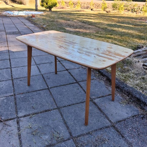 Myytävänä tyylikäs 60- luvun sohvapöytä, pöydän pinta ei virheetön