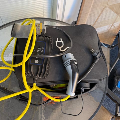 Uusi, avaamattomassa paketissa oleva sähköauton latauslaite. Tilasin kaksi ja toinen jäi asentamatta. Kuvat omasta asennetusta laturista. Paketti säilytetty lämpimässä autotallissa.