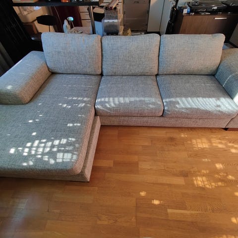 Siisti, hyväkuntoinen ja mukava divaanisohva. Iskusta ostettu Mondo-sohva. Divaanin puolta ei voi vaihtaa. Selkänojan tyynyt ovat irralliset ja kankaassa on vetoketjut.