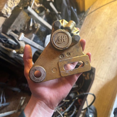 Uusi jarrusatula paloineen ja uusi pääsylinteri. Kannake on tehty 15mm akselille ja viimeistely jäänyt tekemättä.