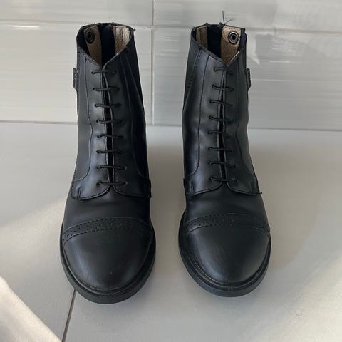 Myydään ruskeat koon 36 ratsastuskengät hintaan 35€. Horze sporty jodhpurit. Pari kertaa käytetty eli kunto uudenveroinen. Pohjien uurteissa vähän likaa.