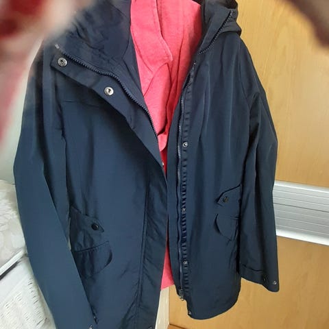 Viime kesänä ostettu ja käyttämättä jäänyt laadukas tummansininen ulkoilutakki.