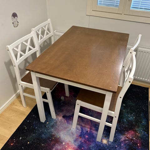 Ruokailuryhmä pöytä ja 8 tuolia puu