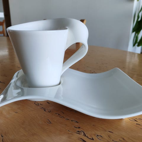 Villeroy & Boch New Wave kuppi ja lautanen valkoinen posliini.