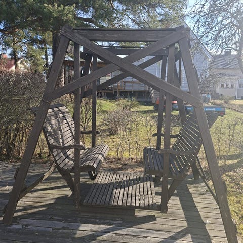 Annetaan siisti ja ehjä, mutta hieman kunnostusta vaativa pihakeinu. Keinu on kokonaisena, purku osiin hakijan vastuulla. Nouto Nokian Siurosta.