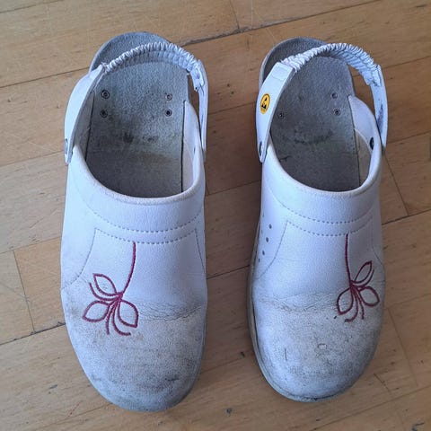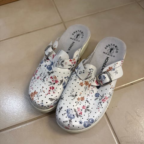 Sievi pistokkaat - puukengän tyyliset, koko 41. Päällinen monivärisellä pallokuosilla, joustava takaremmi kantapään takana. Pohjat kuvioidut paremman pidon takaamiseksi. Sopivat esimerkiksi sisä- tai työjalkineiksi tai yleiseen arkikäyttöön tilanteen mukaan.