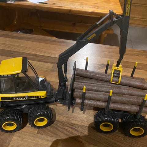 Bruder lelu metsäkone. Muovinen metsäkone, jossa on nivelohjaus, useita pyöriä ja kääntyvä nosturi tarttujalla. Vihreä-keltainen väritys. Soveltuu metsä- ja työkoneleikkeihin sisällä ja ulkona valmistajan ohjeiden mukaan.