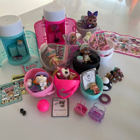 L.O.L. Surprise leikkisetti sisältää useita pieniä nukkeja ja erilaisia tarvikkeita. Mukana on muun muassa nukkeja, vauvanukke, pieniä eläinhahmoja, päähineitä, aurinkolaseja, pantoja, koruja ja muita leikkivarusteita. Setti soveltuu lasten mielikuvitusleikkeihin ja roolileikkeihin. Osat ovat pieniä, joten tuote ei sovellu kaikkein pienimmille lapsille.
