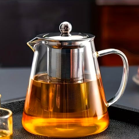 Keraaminen teekannu ja kaksi teekuppia. Kannussa on bambukahva ja irrotettava kansi. Sekä kannussa että kupeissa on vaalea lasitus ja maalattu kukkakuviointi ruskeilla ja sinertävillä sävyillä. Teekannun sisällä on siiviläreikäinen nokka irtoteetä varten. Mukeissa ”lommo” peukaloa varten. Setti soveltuu teen tarjoiluun kotikäyttöön tai pieneen kattaukseen.