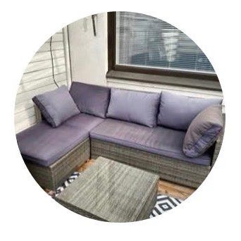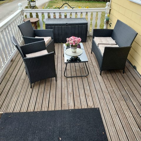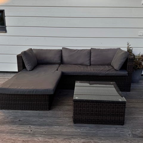 Polyrottinkiset Comfort Garden Bahamas ulkokalusteet. Rottinkiosien kunto hyvä, tyynyissä auringonhaalistamaa tietysti. Kaksi 75x75cm tasolasia joista toinen muoveissa käyttämätön.