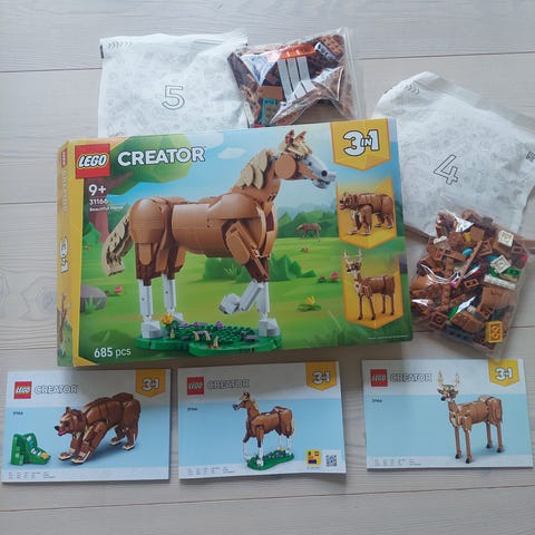 LEGO Friends yksisarvinen rakennuslelu. Setti sisältää palikoista koottavan yksisarvisen, jossa on mustia, valkoisia, pinkkejä ja neonvihreitä osia. Rakennuslelu sopii mielikuvitusleikkeihin ja osaksi muita LEGO Friends -rakennelmia. Yksisarvinen on koottava ja sen raajoja ja päätä voi asetella eri asentoihin leikin mukaan.