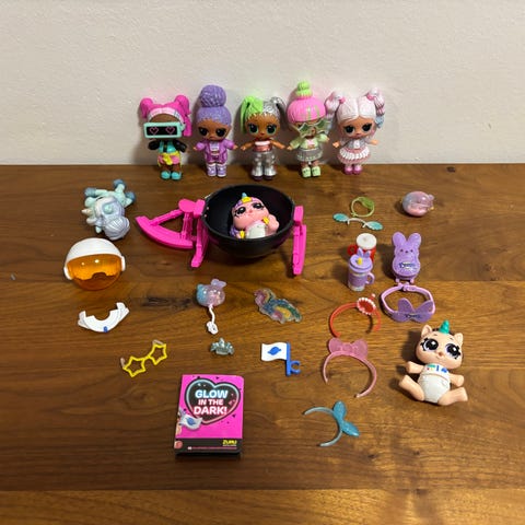 L.O.L. Surprise figuurit ja leikkisetti. Myynnissä useita pieniä muovisia L.O.L. Surprise -hahmoja eri väreissä sekä pieni talon muotoinen leikkisetti. Sopii keräilyyn ja mielikuvitusleikkeihin. Hahmot ovat kooltaan pieniä ja tarkoitettu käytettäväksi yhdessä leikkisetin kanssa tai muiden L.O.L. Surprise -lelujen kanssa.