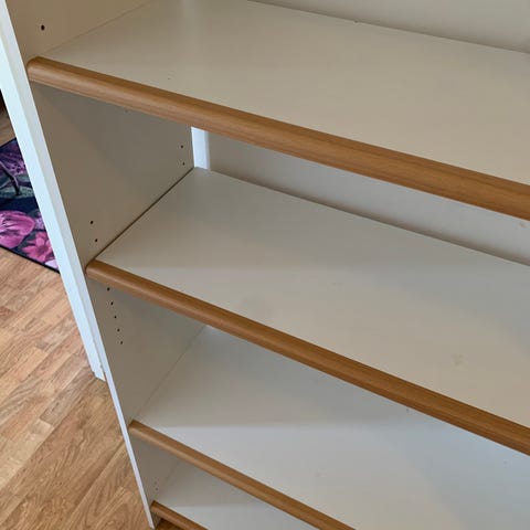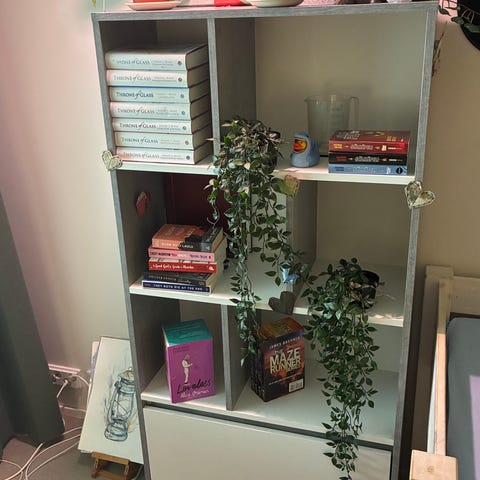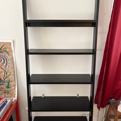 Harmaa siistikuntoinen kirjahylly, jonka kahden hyllyn paikkaa saa säädettyä. Edellisen omistajan jäljiltä oikeassa päädyssä kaksi muovikoukkua jotka lähtenevät siististi irti. Oikean alareunan etukulmasta jyrsiintynyt pieni pala roudatessa, katso kuva. Jämäkkä hylly joka helppo kuljettaa yhdessä osassa. Voin auttaa kantamisessa, hissitalo.