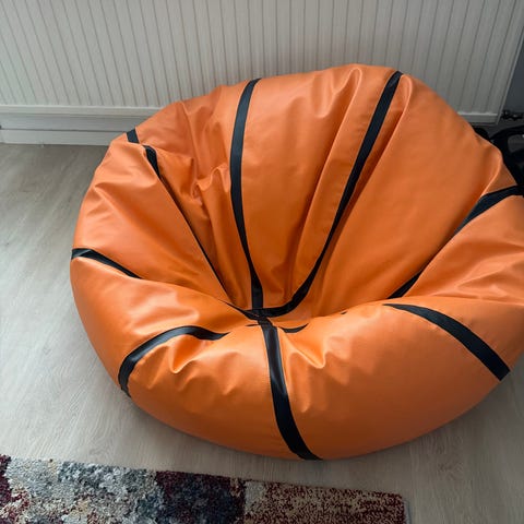 Roomax säkkituoli keltaisella päällisellä. Sopii istuimeksi oleskelutiloihin, lastenhuoneeseen tai rentoutumiseen kotona. Materiaali vaikuttaa olevan kestävää kangasta, joka muotoutuu istujan mukaan. Soveltuu sisäkäyttöön.