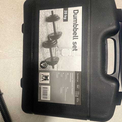 NOTE: The price is only for 1 dumbbell set of 20kg (2x5kg, 2x2,5kg, 2x1,25kg, 2x1kg).