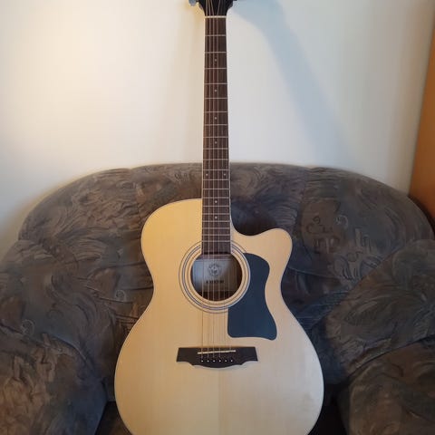 Myydään pienemmän kokoinen kitara. Ei ole tarvetta. Toimiva.