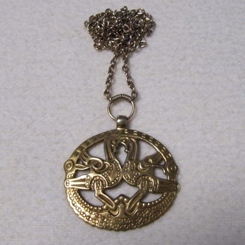 Kalevala koru Kuhmoisten kukot kaulakoru / riipus ja ketju pronssia. Riipus noin 5,5 x 5,5 cm ja ketju 70 cm. Vähän käytetty.