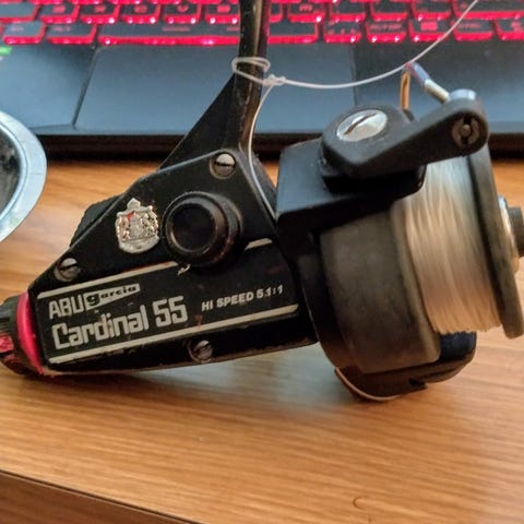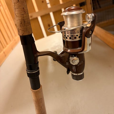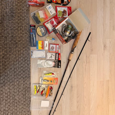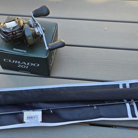 Shimano Stradic CI4+ -haspelkela ja Berkley Lightning Rod -kalastusvapa. Haspelkelassa etujarru ja siihen valmiiksi puolattu siima.