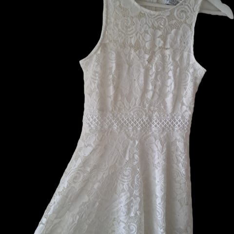 Valkoinen, vuorillinen, käyttämätön pitsimekko, koko 34