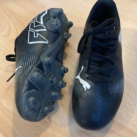 Mustat Puma jalkapallokengät nauhakiinnityksellä. Koko 31.
