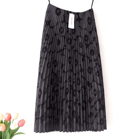 Marimekko My Unikko pliseerattu hame naisille. Koko M. Vaaleanpunainen Unikko-kuosi. Materiaali polyesteriä. Hameessa on kauttaaltaan pliseeraus, joka antaa kankaalle laskeutuvuutta ja liikkuvuutta. Sopii arki- ja juhlakäyttöön erilaisten yläosien kanssa.