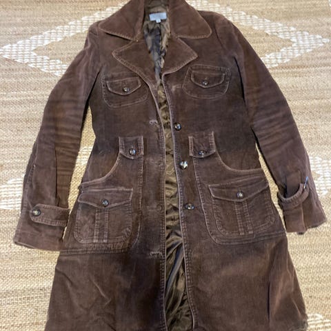 Valkoinen farkkutakki/vakosamettitakki koko S/M. Etutaskut ja edessä napitus. Kainalo-kainalo 49 cm, olka-helma 59 cm. Materiaali 97% puuvillaa ja 3% elastaania. Savuton ja eläimetön koti.